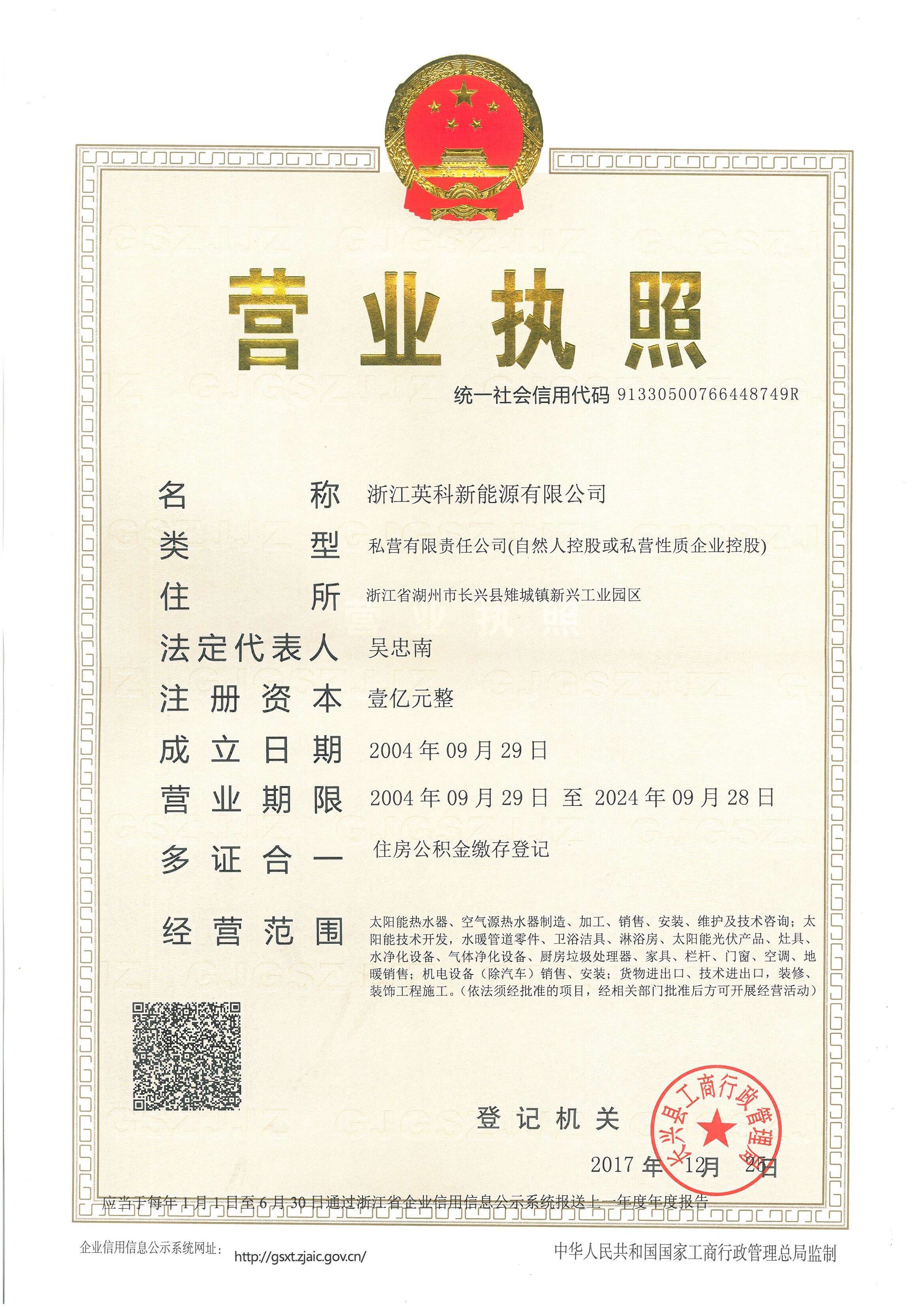 浙江英科新能源有限公司創立于2004年,是一家以太陽能空氣能產業為主的新能源企業,產品包括空氣能熱水器、家用系列太陽能熱水器、商用系列太陽能熱水器等。一直以來,公司堅奉科學的原則,長期在國外著名的高校新能源開發機構的指導下,在長興建立了科研、生產、銷售于一體的大型科技產品生產基地,實現熱水器產業化一條龍生產。公司技術力量雄厚,擁有國內領先的生產設備,實現機械化、模具化,憑借優質的產品和先進的管理理念,在行業內率先通過lS09001國際質量體系認證...